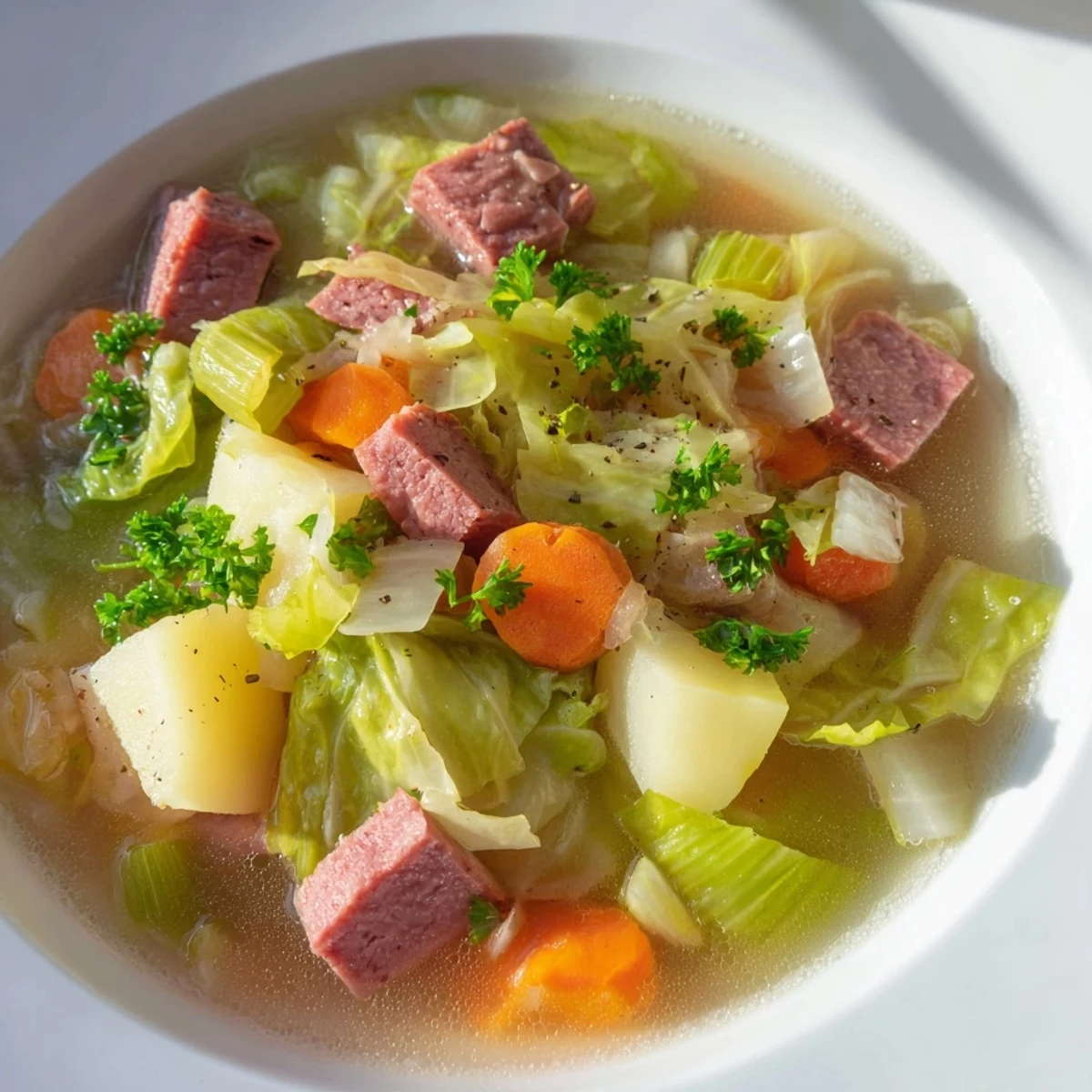 - Cooked corned beef: The star of the show that makes this soup incredibly flavorful and satisfying