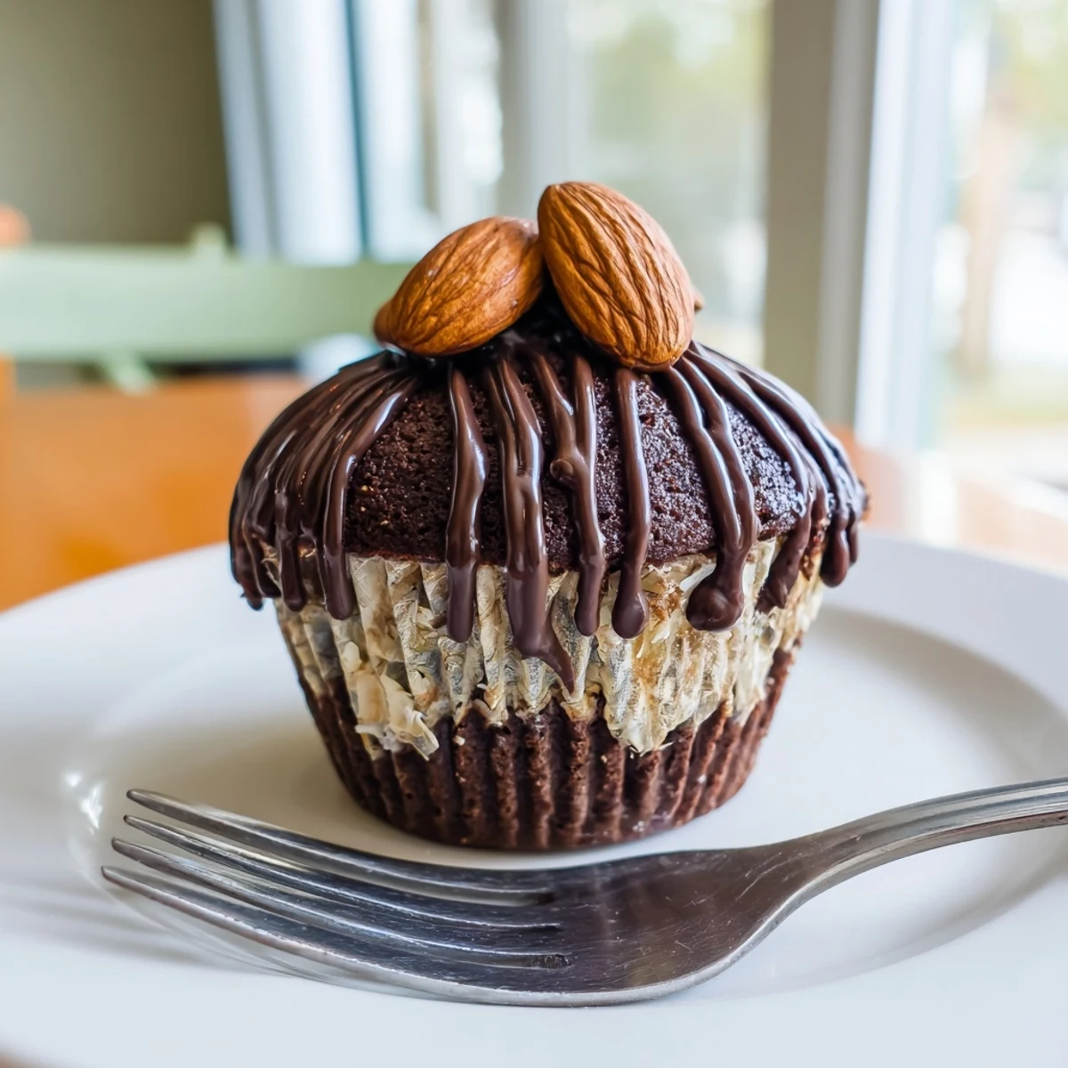 These flourless chocolate cupcakes deliver all the flavors of the classic Almond Joy candy bar in a rich, decadent dessert. The dense, fudge-like chocolate base is naturally gluten-free, while the sweet coconut filling adds chewy texture and tropical sweetness. Each cupcake is crowned with two roasted almonds and a drizzle of melted chocolate for that signature crunch.