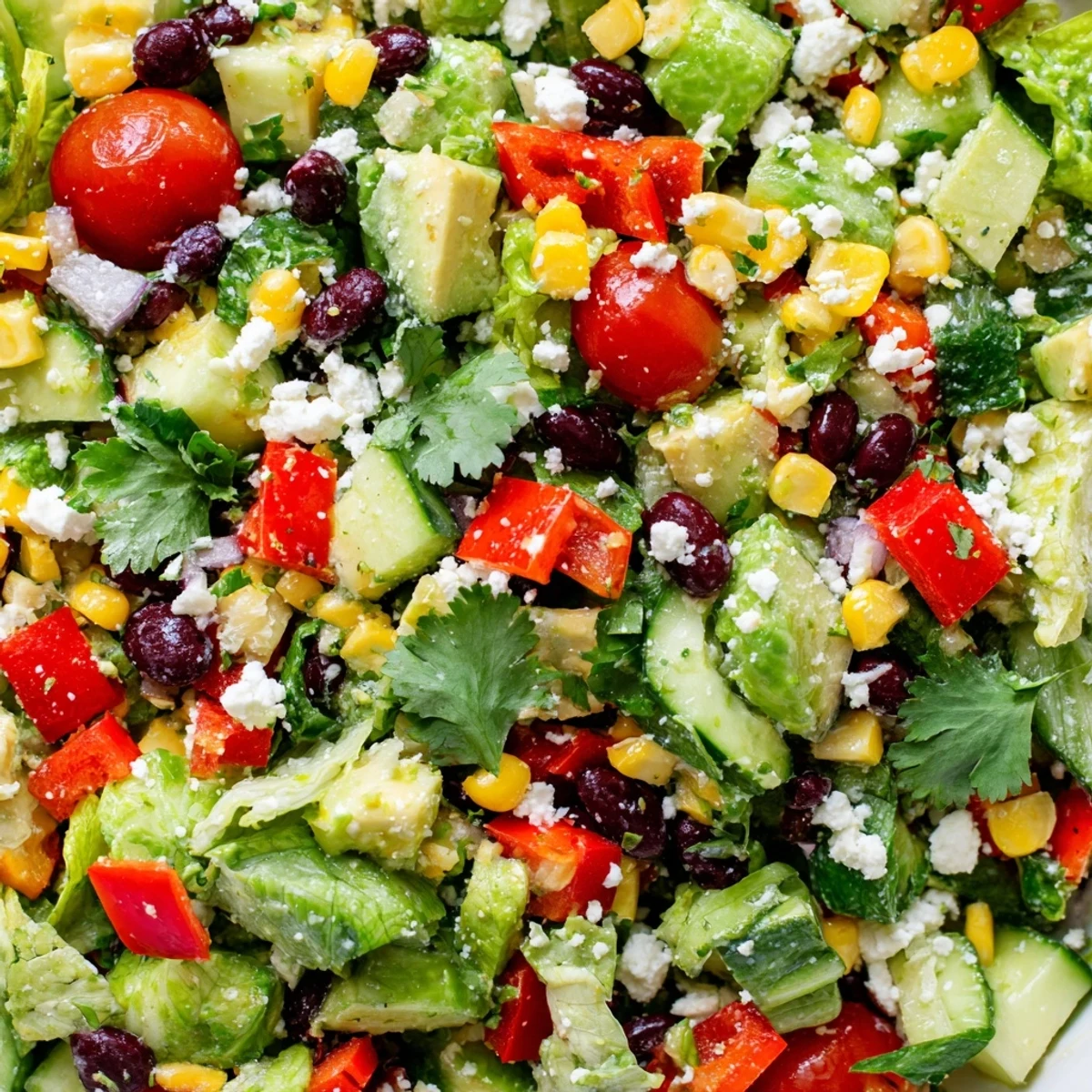 This refreshing Mexican chopped salad combines crisp romaine, sweet cherry tomatoes, crunchy cucumber, bell pepper, and red onion with protein-packed black beans and creamy avocado. The star is the zesty lime-cilantro dressing, whisked together with olive oil, garlic, cumin, and a touch of honey for perfect balance.