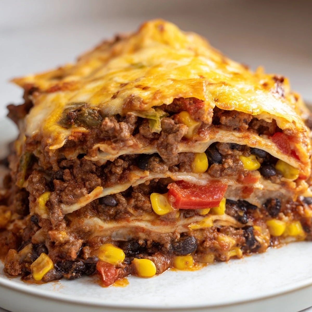 This Tex-Mex inspired dish brings together the comforting layered structure of Italian lasagna with bold Mexican flavors. Ground beef seasoned with taco spices, black beans, sweet corn, and diced tomatoes create a hearty filling, while flour tortillas replace traditional pasta sheets. Topped with shredded Mexican cheese blend and baked until golden and bubbly, this casserole delivers rich, satisfying flavors perfect for family dinners or gathering with friends.