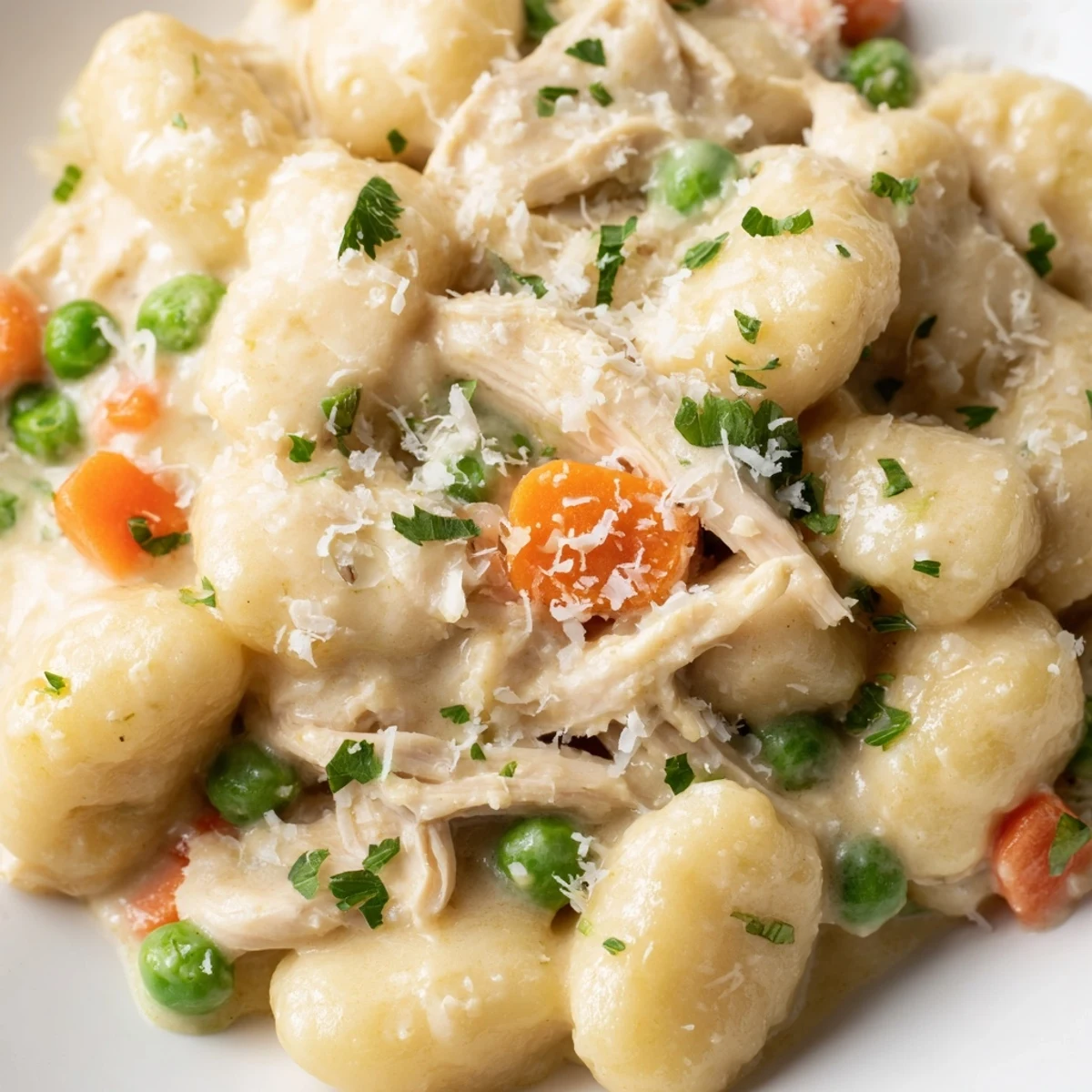 This comforting one-pot meal brings together tender chicken, soft potato gnocchi, and classic vegetables in a rich, creamy sauce. Ready in just 45 minutes, it combines the heartiness of traditional pot pie with the convenience of a single skillet.